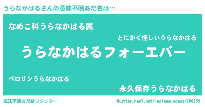 | 女子向けラノベタイトル風あだ名 | 『うらなかはるの婚約者』 |