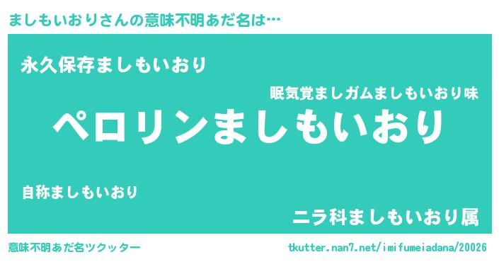 | 男性向けラノベタイトル風あだ名 | 『ましもいおりに滅ぼされるだけの簡単なお仕事です』 |