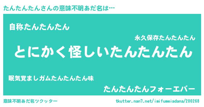 | 女子向けラノベタイトル風あだ名 | 『たんたんたんの卵を拾いまして』 |
