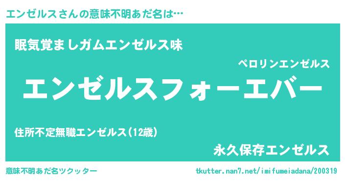 | 女子向けラノベタイトル風あだ名 | 『エンゼルスの雑貨屋さん』 |