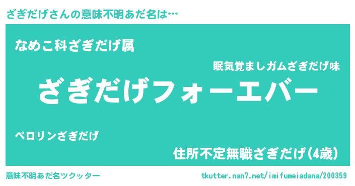 | ヒーロー風カッコイイあだ名 | 『ウルトラざぎだげマン』『仮面ザギダー』 |