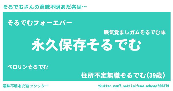 | 男性向けラノベタイトル風あだ名 | 『そるでむという概念が存在しない退屈な世界 』 |