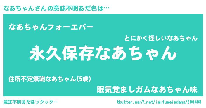 | ポケモン風あだ名 | 『ゼニナア』『メロナッア』 |