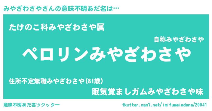| 男性向けラノベタイトル風あだ名 | 『みやざわさやの憂鬱』 |