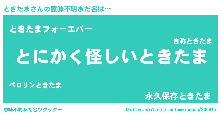 | ヒーロー風カッコイイあだ名 | 『幻影騎士トキ』『ウルトラときたまマン』 |