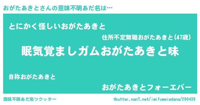 | 男性向けラノベタイトル風あだ名 | 『おまえをオタクにしてやるから、俺をおがたあきとにしてくれ! 』 |