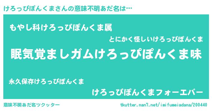 | ヒーロー風カッコイイあだ名 | 『正義の使者けろっぴぽんくま』 |
