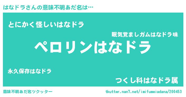| ピコ太郎風あだ名 | 『ハコ三郎』『ハナ次郎』『ハハ太郎』 |