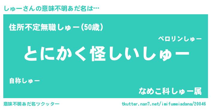 | ポケモン風あだ名 | 『ヒシュー』『シーュイ』『シュゴンZ』 |