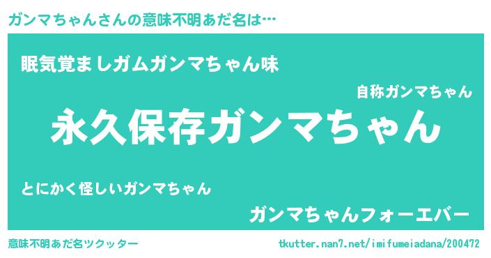 | 胡散臭い通販商品みたいなあだ名 | 『来世でも幸せになれる健康食品…その名も「ガンマちゃん」』 |