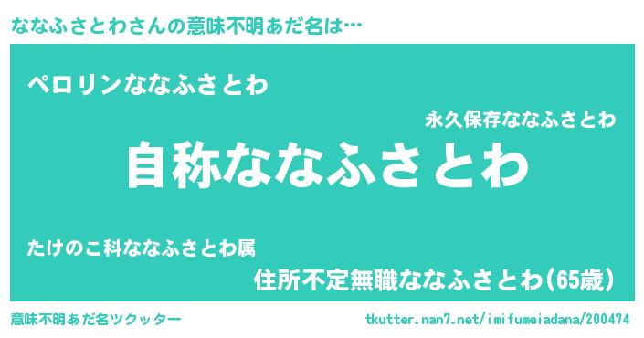 | ヒーロー風カッコイイあだ名 | 『最強戦士ナナフサトワ』『仮面ナナダー』 |