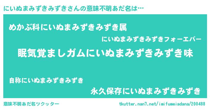 | 欧米人風あだ名 | 『ダニエルにいぬまみずきみずき』 |