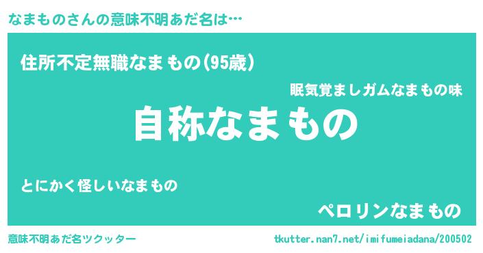 | 恥ずかしいあだ名 | 『ナマモノデラックス』『ナマリンリン』 |