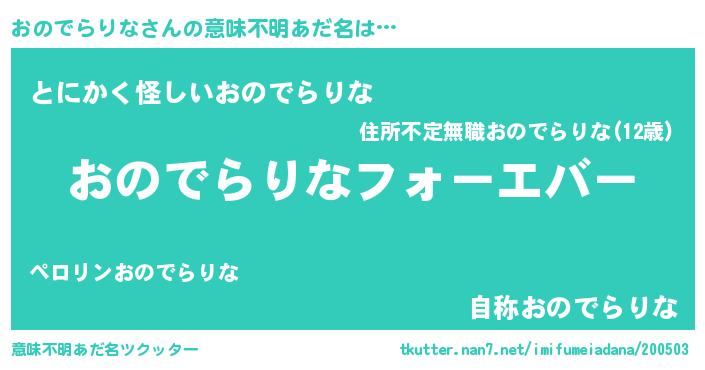 | 欧米人風あだ名 | 『おのでらりなクリステル』 |