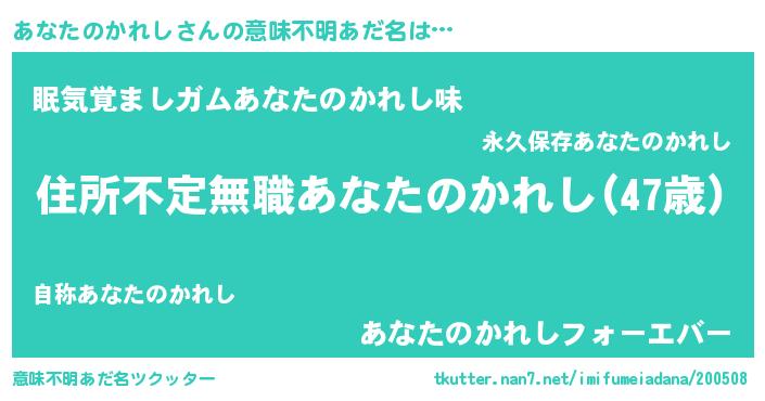 | ヒーロー風カッコイイあだ名 | 『仮面アナダー』『ネオアナタノカレシ』 |