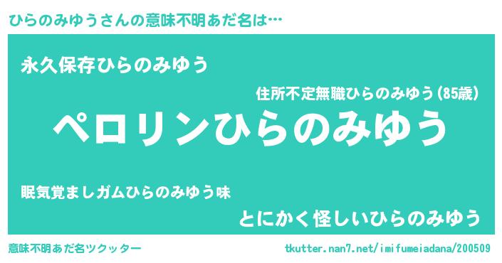 | 胡散臭い通販商品みたいなあだ名 | 『億万長者になれる霊験あらたかなお札…その名も「ひらのみゆう」』 |