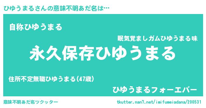 | ヘコむあだ名 | 『ひゆうまる(遠い目)』『酢こんぶ』 |