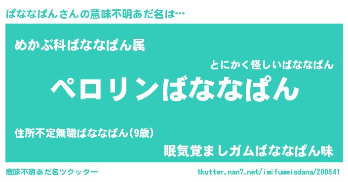 | 胡散臭い通販商品みたいなあだ名 | 『必ず成功するブレスレット…その名も「ばななぱん」』 |