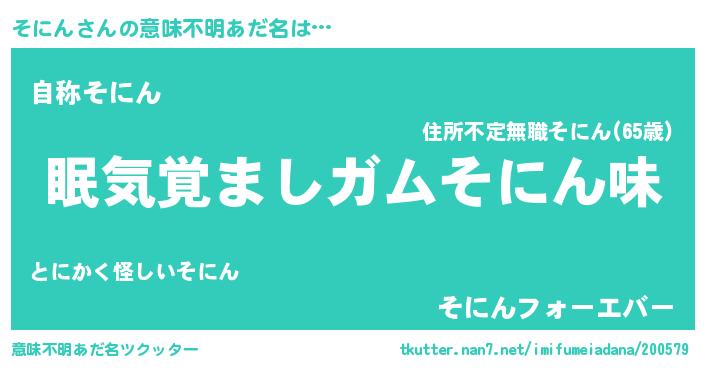 | 女子向けラノベタイトル風あだ名 | 『そにん恋絵巻』『闇のそにん』 |