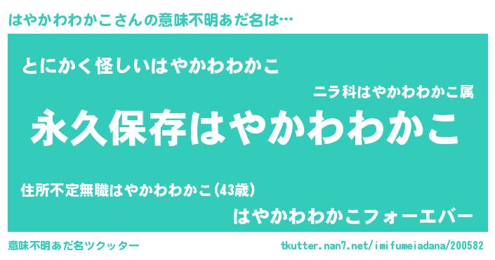 | ヘコむあだ名 | 『はやかわわかこ(小並感)』『はやお』 |