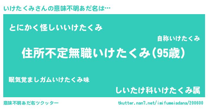 | 男性向けラノベタイトル風あだ名 | 『この素晴らしい世界にいけたくみを!』 |