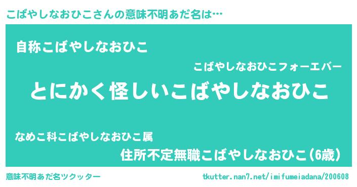 | 胡散臭い通販商品みたいなあだ名 | 『信頼と実績のサプリメント…その名も「こばやしなおひこ」』 |