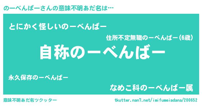 | 男性向けラノベタイトル風あだ名 | 『Re:のーべんばーから始める異世界生活』 |