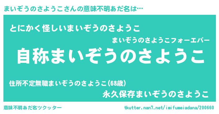 | ヘコむあだ名 | 『まいを』『まいぞうのさようこ(爆)』 |