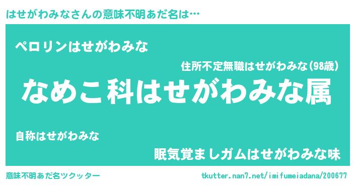 | 男性向けラノベタイトル風あだ名 | 『転生したらはせがわみなだった件』 |