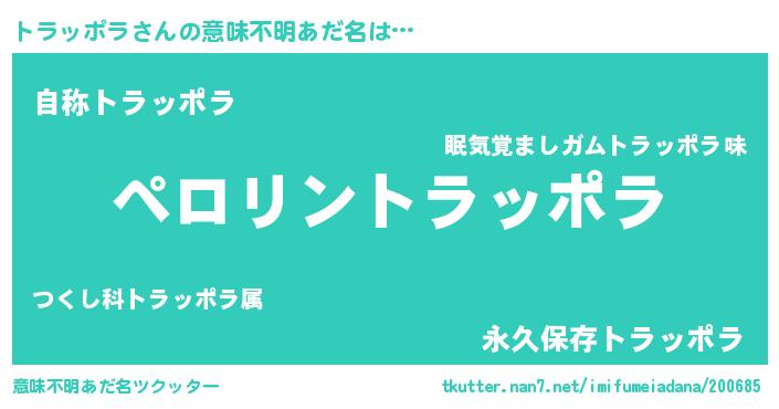 | 男性向けラノベタイトル風あだ名 | 『トラッポラアートオンライン』 |