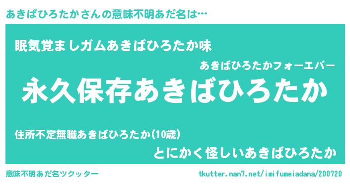 | ヘコむあだ名 | 『あきばひろたか(爆)』『あきっぺ』 |