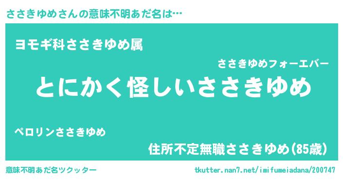 | 女子向けラノベタイトル風あだ名 | 『ささきゆめの卵を拾いまして』 |