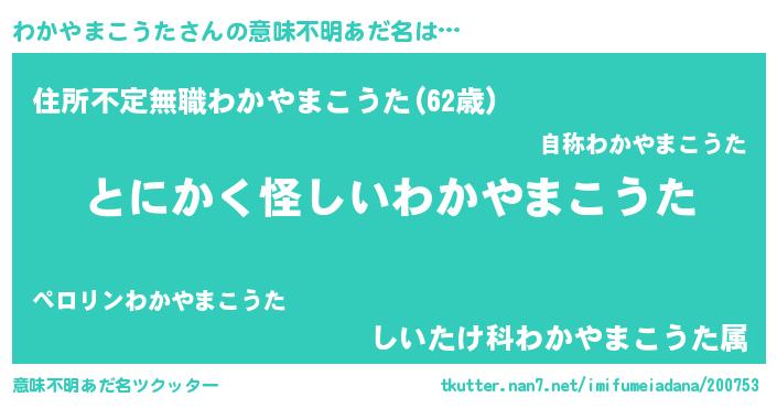 | 男性向けラノベタイトル風あだ名 | 『わかやまこうたの嫁は女の子じゃないと思った?』 |