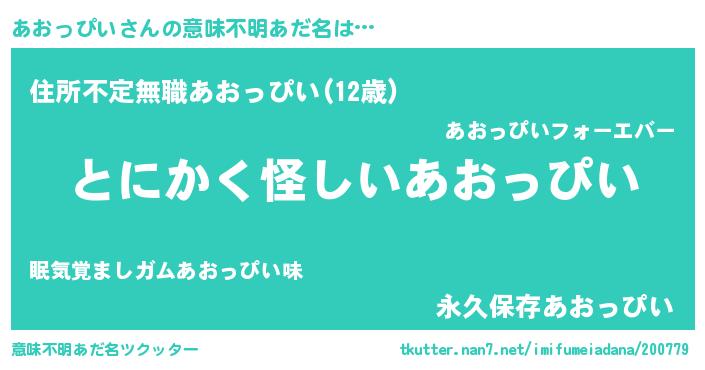 | 女子向けラノベタイトル風あだ名 | 『あおっぴいの卵を拾いまして』 |