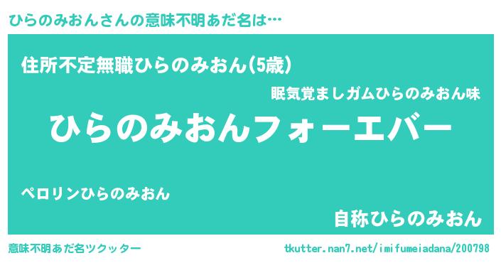 | 欧米人風あだ名 | 『ひらのみおんクリステル』 |