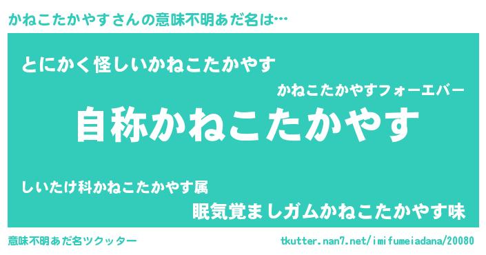 | 肩書あだ名 | 『かねこたかやす閣下』 |