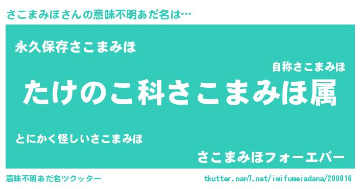 | 胡散臭い通販商品みたいなあだ名 | 『来世でも幸せになれる水素水…その名も「さこまみほ」』 |