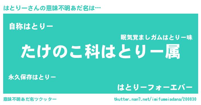 | 胡散臭い通販商品みたいなあだ名 | 『テレビで話題のアガリクス…その名も「はとりー」』 |