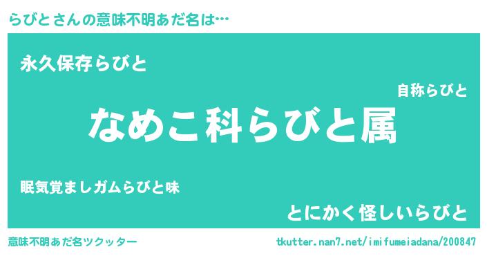 | 男性向けラノベタイトル風あだ名 | 『転生したららびとだった件』 |