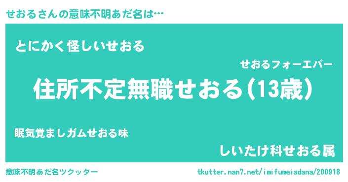 | ヘコむあだ名 | 『せお太郎』『なまこ酢』『せおもー』 |