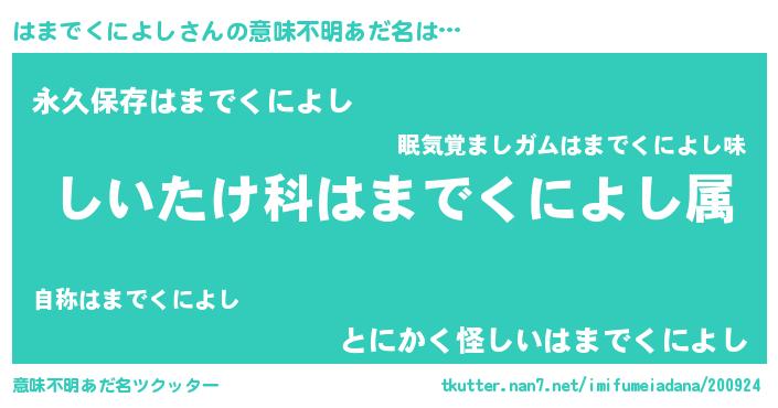 | 胡散臭い通販商品みたいなあだ名 | 『絶対に幸福をもたらす水素水…その名も「はまでくによし」』 |