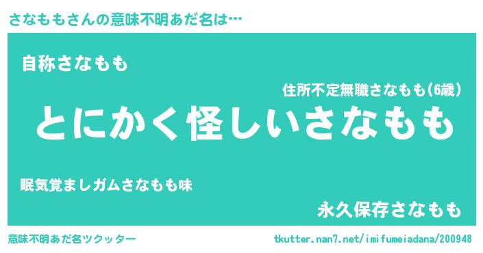 | 胡散臭い通販商品みたいなあだ名 | 『信頼と実績のサプリメント…その名も「さなもも」』 |