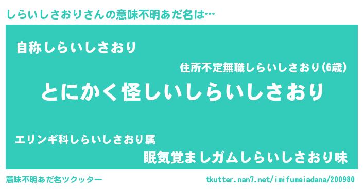 | ポケモン風あだ名 | 『メロシッラ』『ヒシライシサオリ』 |
