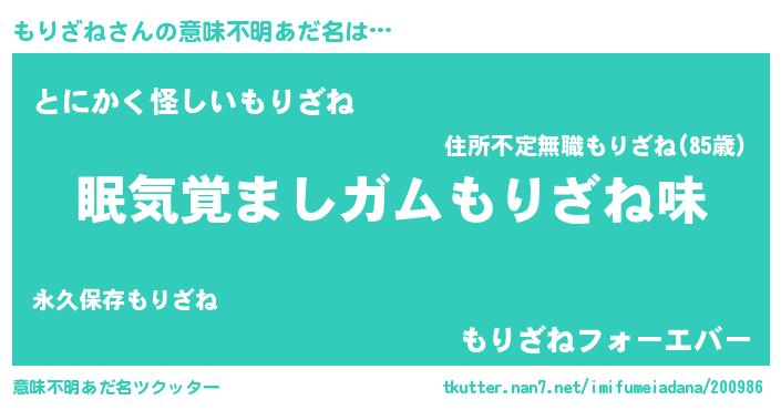 | ヘコむあだ名 | 『もりぷりん』『酢こんぶ』 |