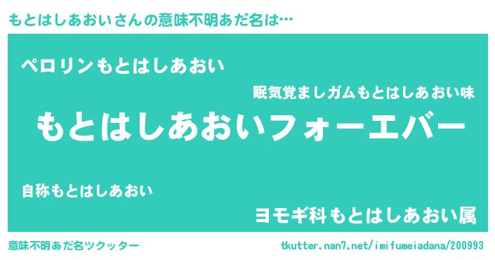 | 欧米人風あだ名 | 『もとはしあおいクリステル』 |