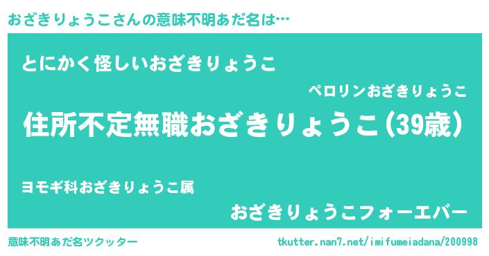 | 料理風あだ名 | 『おざきりょうこのカルパッチョ風』 |