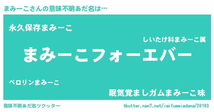 | 胡散臭い通販商品みたいなあだ名 | 『世界が平和になる高級そうな壺…その名も「まみーこ」』 |