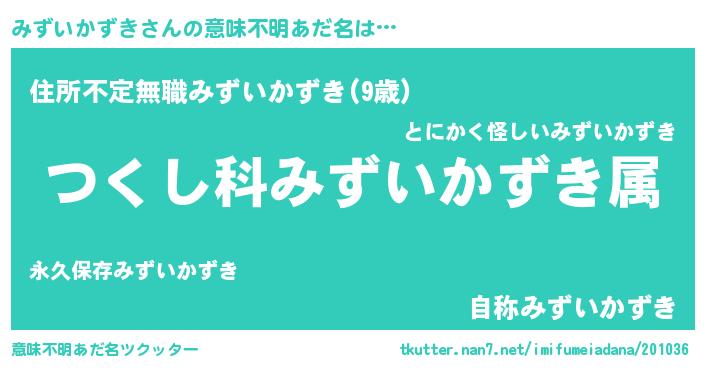 | 欧米人風あだ名 | 『アンジェラ・みずいかずき』 |