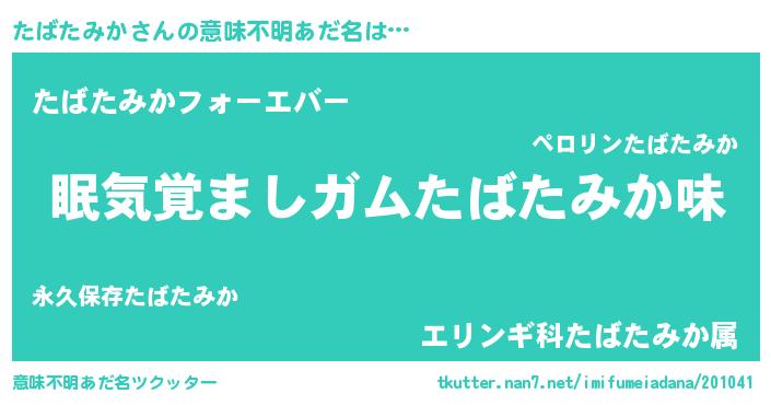 | 男性向けラノベタイトル風あだ名 | 『ノーゲーム・ノータバタミカ』 |