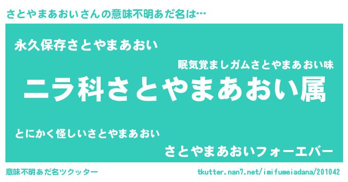 | ヘコむあだ名 | 『さとやまあおい(爆)』『酢こんぶ』 |